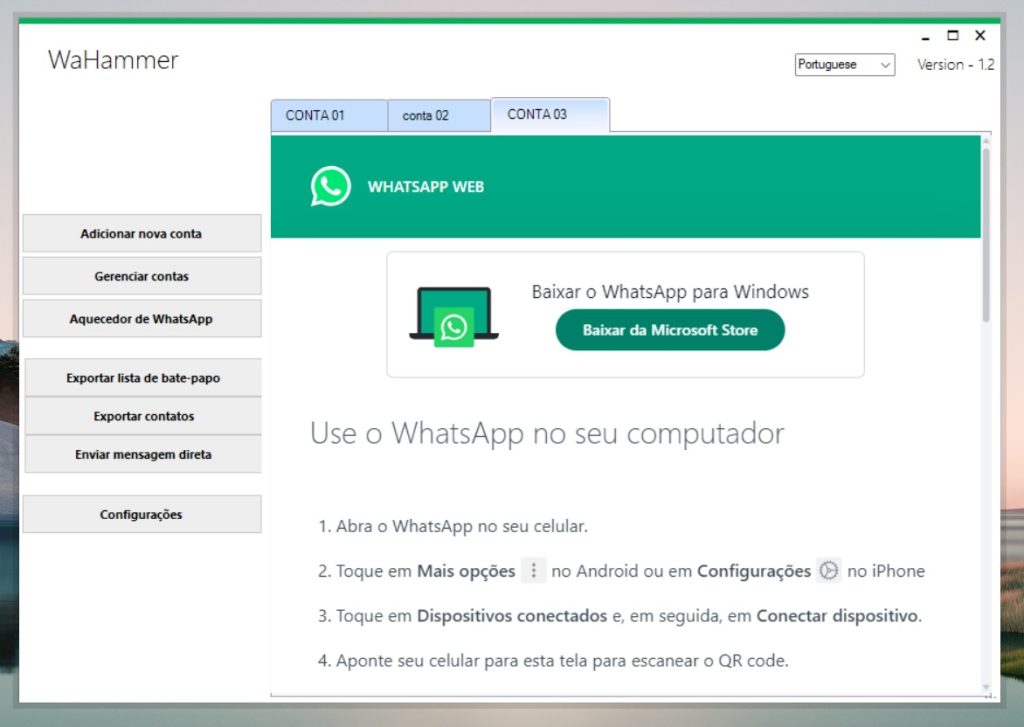 É um software de instalação, no qual é baixado seu computador ou notebook , sistema Windows 10,11 serve para aquecer seus números para evitar banimentos no whatsapp